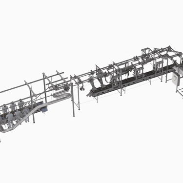 Linha de corte automático para aves totalmente nacional, com inúmeras vantagens em manutenção.